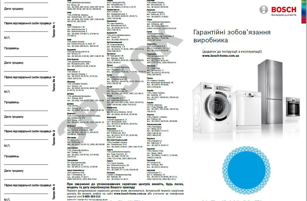 - Гарантійного талона встановленого зразка, в якому повинен бути удрукований LSS-код. Правильність даного коду можна завжди перевірити тут: http://www.code-check.com.ua,